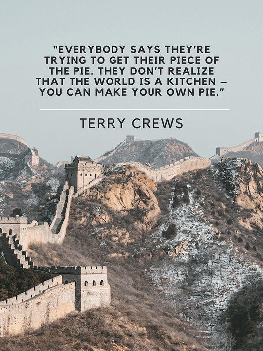 Terry Crews Quote: Piece of the Pie White Modern Wood Framed Art Print with Double Matting by ArtsyQuotes