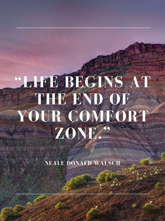 Neale Donald Walsch Quote: Comfort Zone White Modern Wood Framed Art Print with Double Matting by ArtsyQuotes