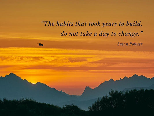 Susan Powter Quote: The Habits White Modern Wood Framed Art Print with Double Matting by ArtsyQuotes