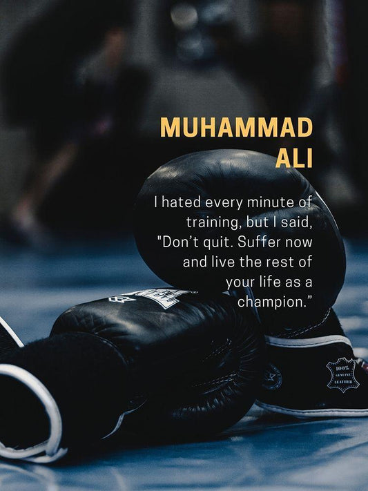 Muhammad Ali Quote: Dont Quit White Modern Wood Framed Art Print with Double Matting by ArtsyQuotes