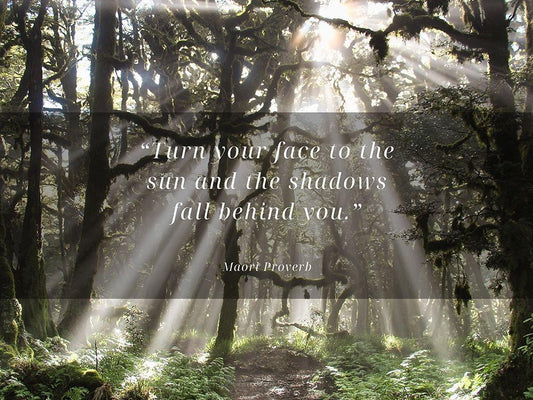 Maori Proverb Quote: Face to the Sun White Modern Wood Framed Art Print with Double Matting by ArtsyQuotes