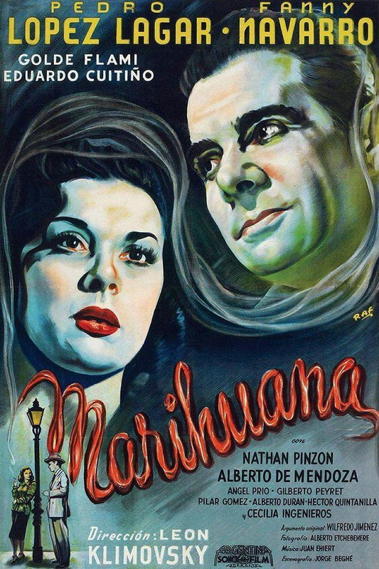 Vintage Vices: Marihuana Story - Spanish White Modern Wood Framed Art Print with Double Matting by Vintage Vices