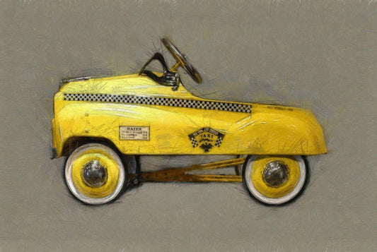 Taxi Cab Pedal Car White Modern Wood Framed Art Print with Double Matting by Calkins, Michelle
