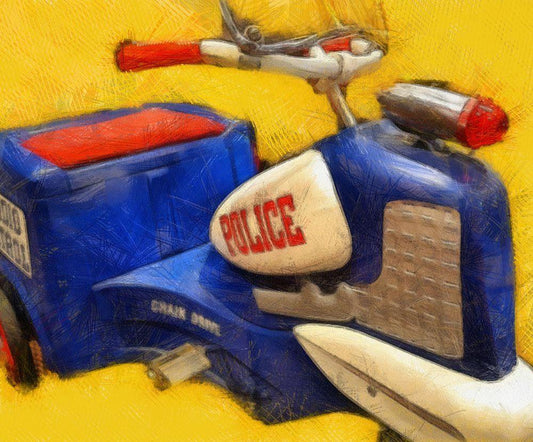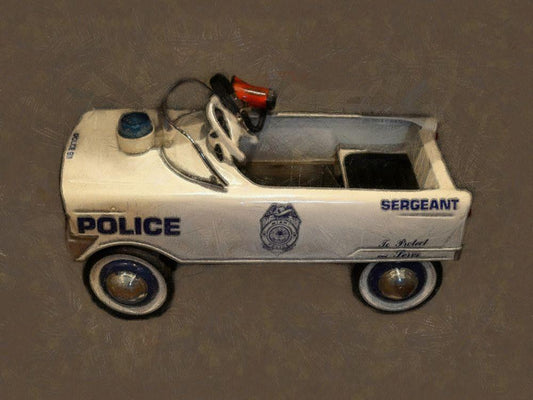 Police Pedal Car White Modern Wood Framed Art Print with Double Matting by Calkins, Michelle