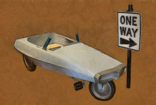 Probe Pedal Car White Modern Wood Framed Art Print with Double Matting by Calkins, Michelle