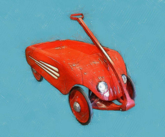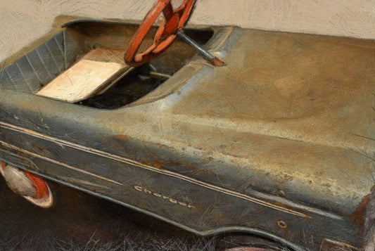 Charger Pedal Car White Modern Wood Framed Art Print with Double Matting by Calkins, Michelle