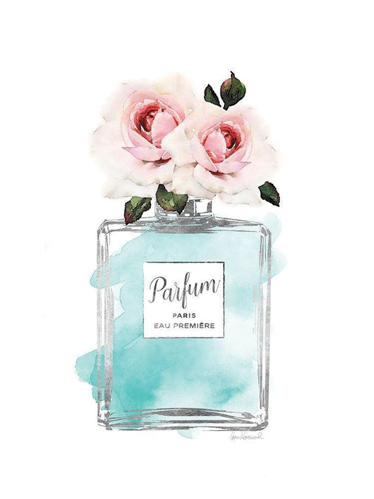 Parfume Teal with Rose White Modern Wood Framed Art Print with Double Matting by Greenwood, Amanda