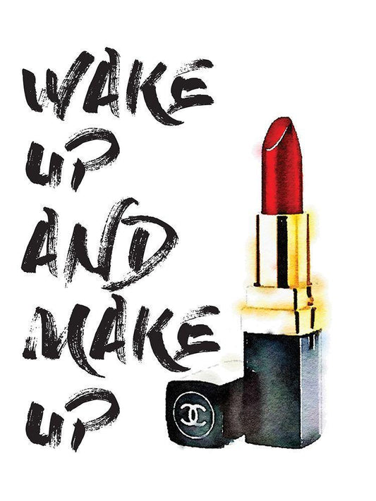 Wakeup Makeup Lipstick Red White Modern Wood Framed Art Print with Double Matting by Greenwood, Amanda