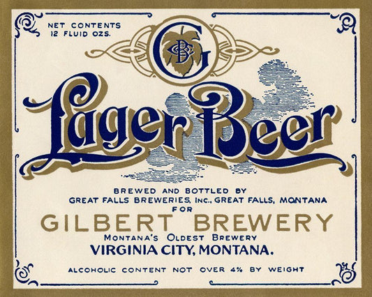 Gilbert Brewery Lager Beer White Modern Wood Framed Art Print with Double Matting by Vintage Booze Labels