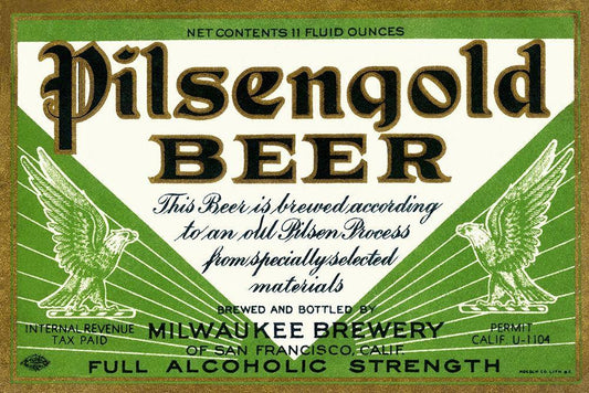 Pilsengold Beer White Modern Wood Framed Art Print with Double Matting by Vintage Booze Labels