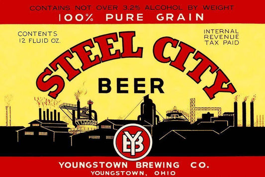 Steel City Beer White Modern Wood Framed Art Print with Double Matting by Vintage Booze Labels