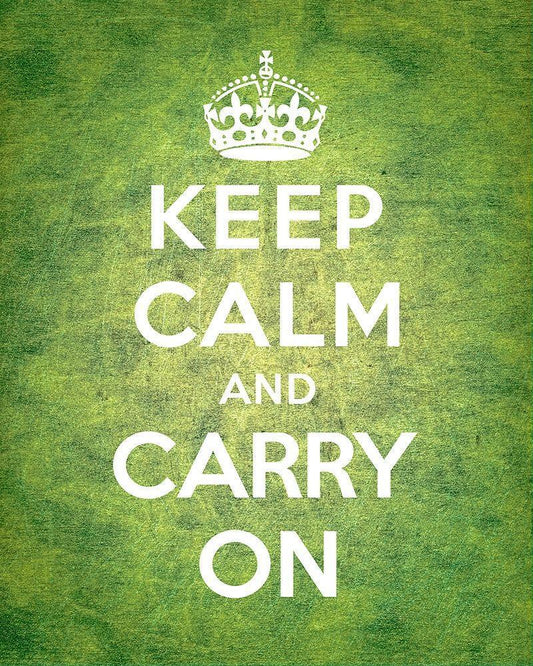 Keep Calm and Carry On - Vintage Green White Modern Wood Framed Art Print with Double Matting by The British Ministry of Information