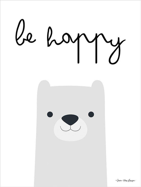 Be Happy White Modern Wood Framed Art Print with Double Matting by Seven Trees Design