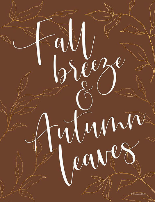 Fall Breeze And Autumn Leaves White Modern Wood Framed Art Print with Double Matting by Ball, Susan