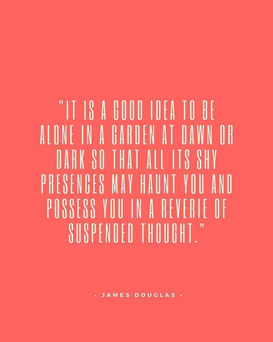 James Douglas Quote: Garden at Dawn White Modern Wood Framed Art Print with Double Matting by ArtsyQuotes