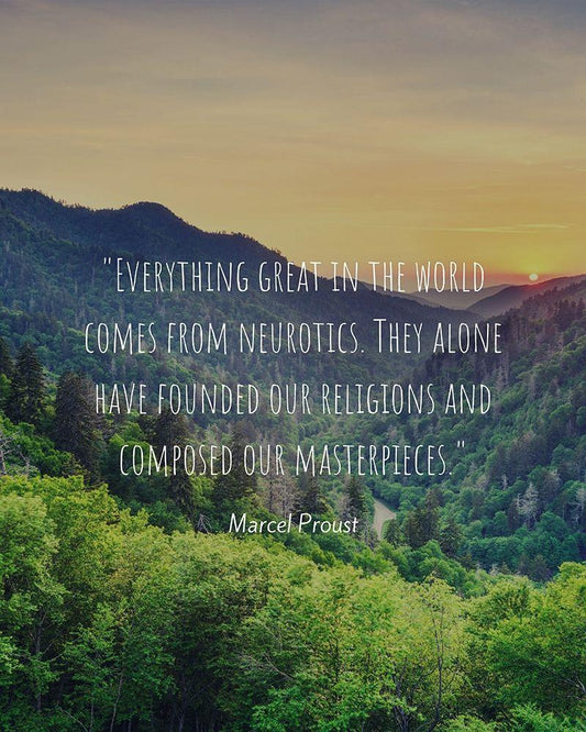Marcel Proust Quote: Neurotics White Modern Wood Framed Art Print with Double Matting by ArtsyQuotes