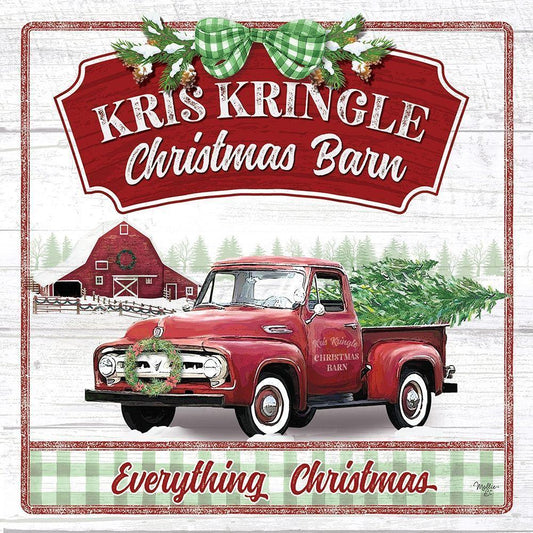 Kris Kringle Christmas Barn White Modern Wood Framed Art Print with Double Matting by Mollie B.