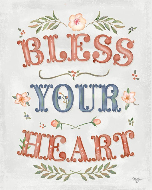 Bless Your Heart White Modern Wood Framed Art Print with Double Matting by Mollie B.