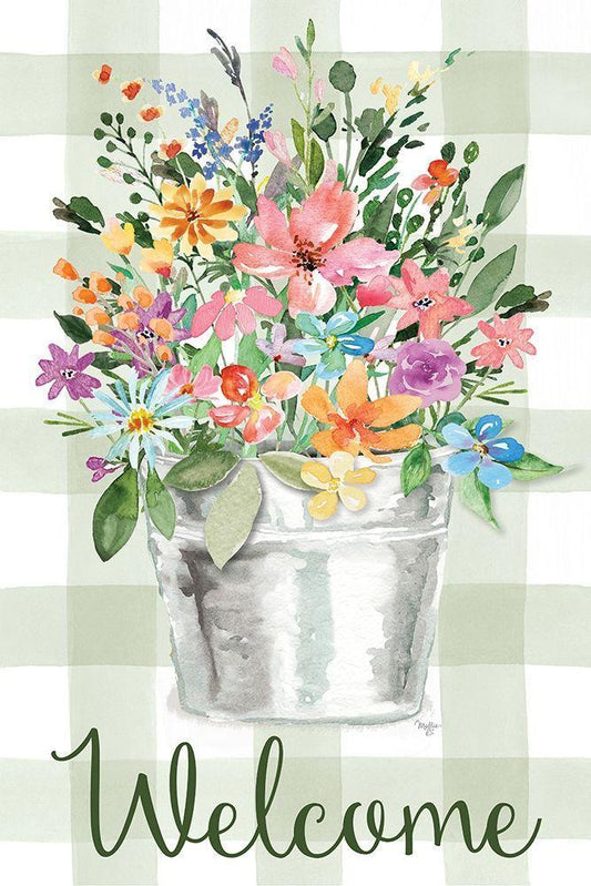 Welcome Flowers White Modern Wood Framed Art Print with Double Matting by Mollie B.