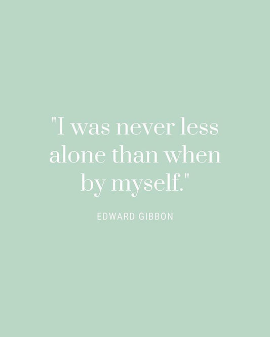Edward Gibbon Quote: Never Less Alone White Modern Wood Framed Art Print with Double Matting by ArtsyQuotes