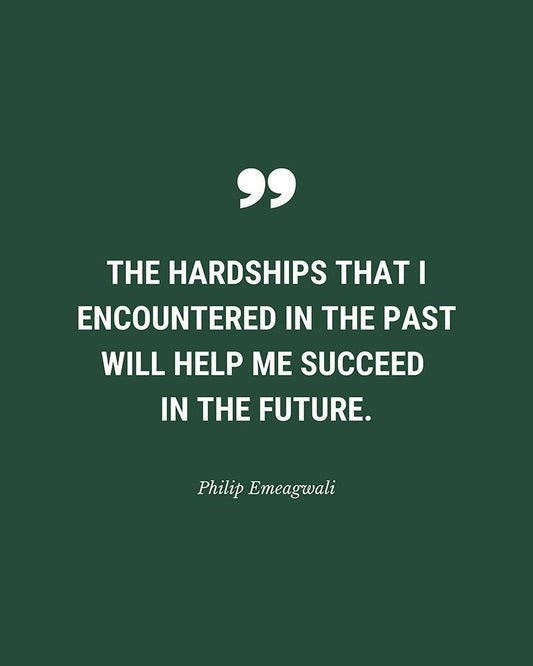 Philip Emeagwali Quote: The Hardships White Modern Wood Framed Art Print with Double Matting by ArtsyQuotes