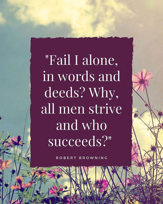 Robert Browning Quote: All Men Strive White Modern Wood Framed Art Print with Double Matting by ArtsyQuotes