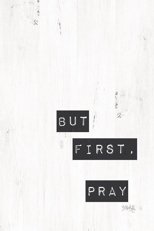 But First, Pray White Modern Wood Framed Art Print with Double Matting by Rae, Marla