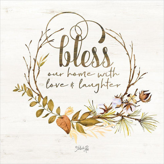Bless Our Home Fall Foliage White Modern Wood Framed Art Print with Double Matting by Rae, Marla