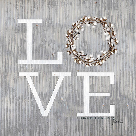 Love Cotton Wreath White Modern Wood Framed Art Print with Double Matting by Rae, Marla