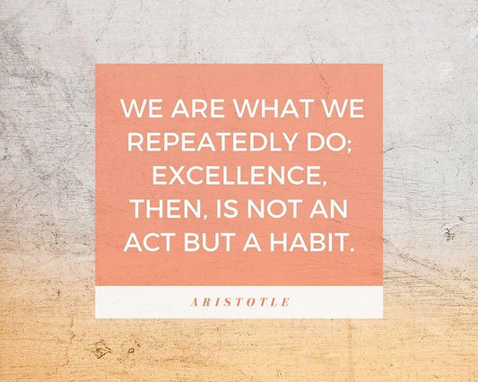 Aristotle Quote: Excellence White Modern Wood Framed Art Print with Double Matting by ArtsyQuotes