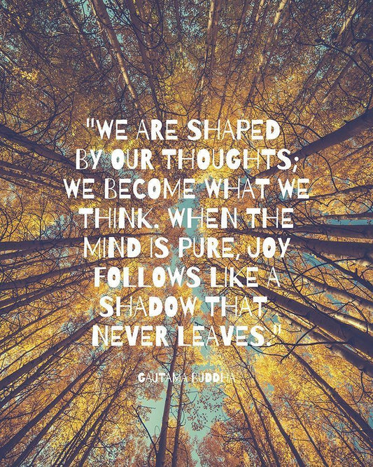 Gautama Buddha Quote: Shaped by Our Thoughts White Modern Wood Framed Art Print with Double Matting by ArtsyQuotes