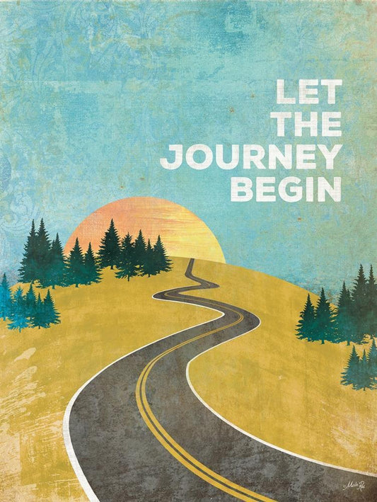 Let the Journey Begin White Modern Wood Framed Art Print with Double Matting by Rae, Marla