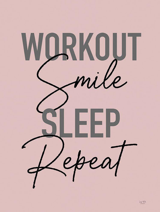 Workout-Smile-Sleep-Repeat White Modern Wood Framed Art Print with Double Matting by Lux + Me Designs
