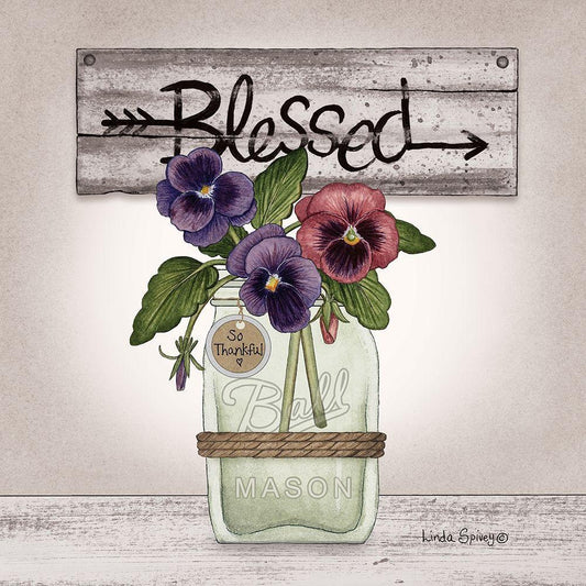 Thankful And Blessed White Modern Wood Framed Art Print with Double Matting by Spivey, Linda