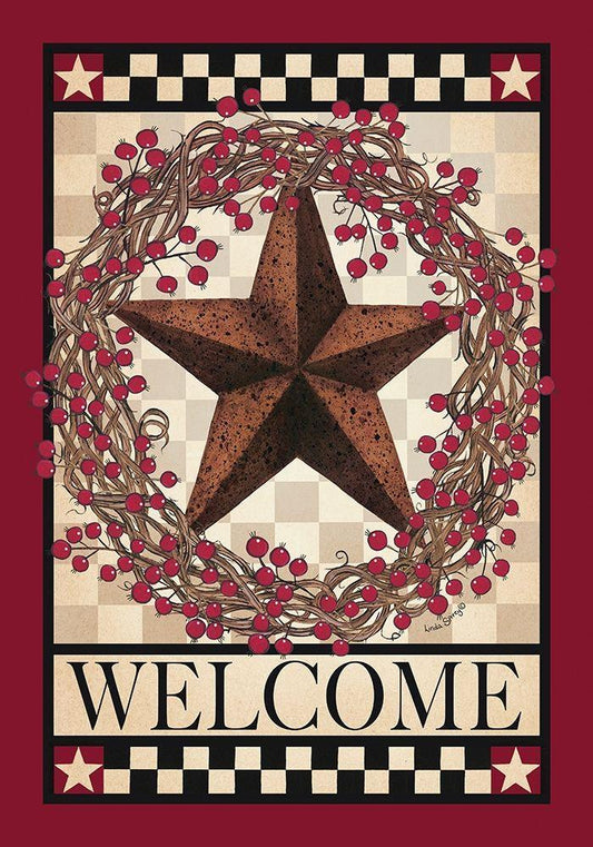 Barn Star Berry Wreath White Modern Wood Framed Art Print with Double Matting by Spivey, Linda