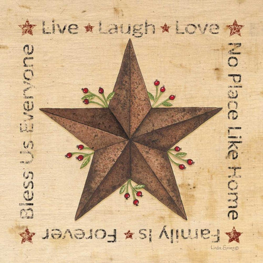 Live, Laugh, Love Barn Star White Modern Wood Framed Art Print with Double Matting by Spivey, Linda