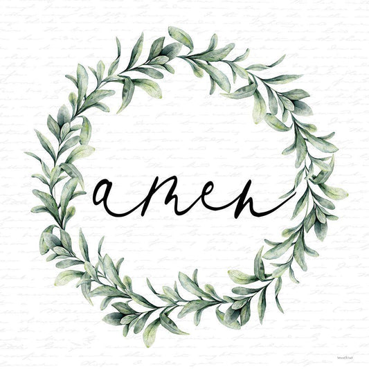 Amen Wreath White Modern Wood Framed Art Print with Double Matting by lettered and lined