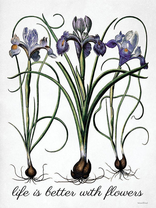 Life is Better with Flowers White Modern Wood Framed Art Print with Double Matting by Lettered And Lined