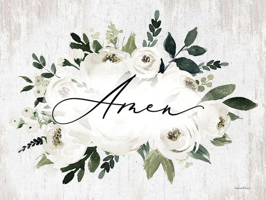 Amen White Modern Wood Framed Art Print with Double Matting by lettered And lined