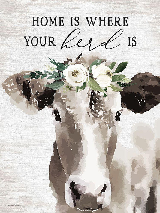 Home is Where Your Herd Is White Modern Wood Framed Art Print with Double Matting by lettered And lined