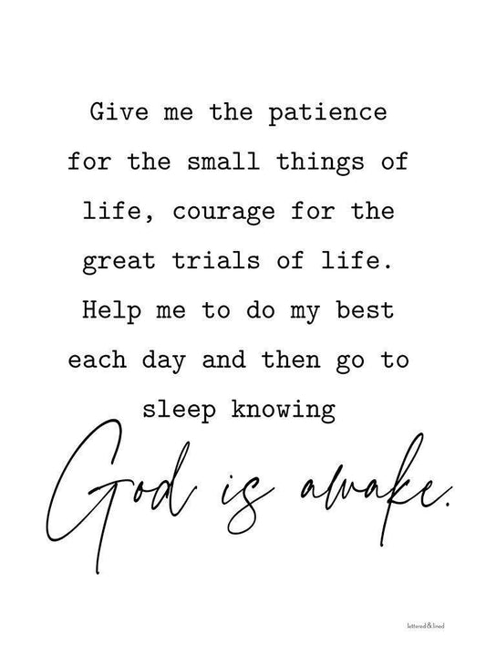 God is Awake White Modern Wood Framed Art Print with Double Matting by lettered And lined