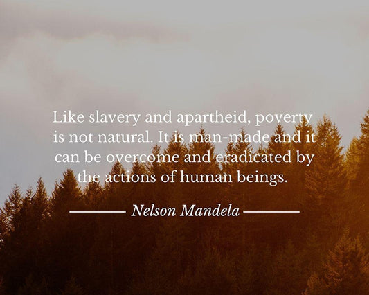 Nelson Mandela Quote: Poverty is not Natural White Modern Wood Framed Art Print with Double Matting by ArtsyQuotes