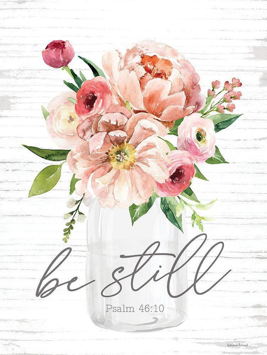 Be Still Floral White Modern Wood Framed Art Print with Double Matting by lettered And lined