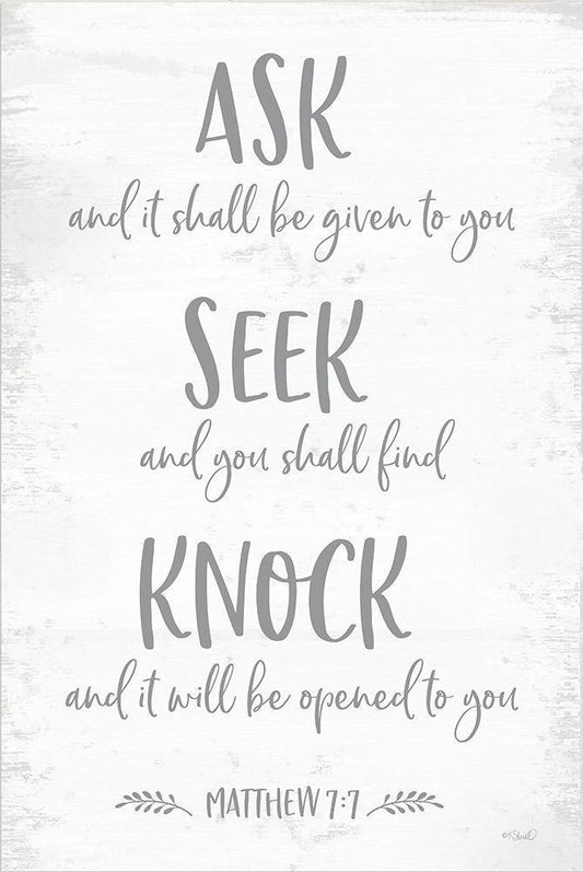 Mathew 7:7 White Modern Wood Framed Art Print with Double Matting by Sherrill, Kate