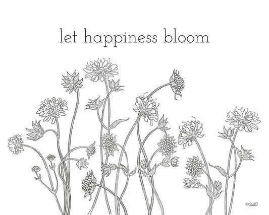 Let Happiness Bloom White Modern Wood Framed Art Print with Double Matting by Sherrill, Kate