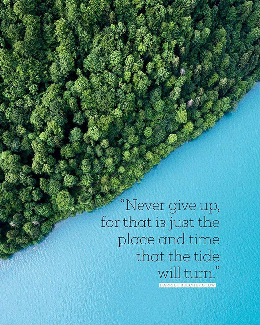 Harriet Beecher Stow Quote: Never Give Up White Modern Wood Framed Art Print with Double Matting by ArtsyQuotes