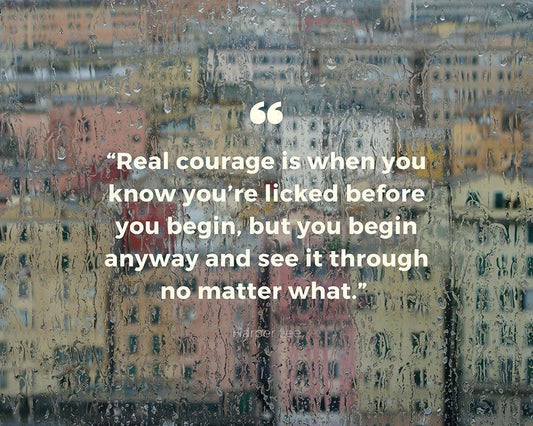 Harper Lee Quote: Real Courage White Modern Wood Framed Art Print with Double Matting by ArtsyQuotes