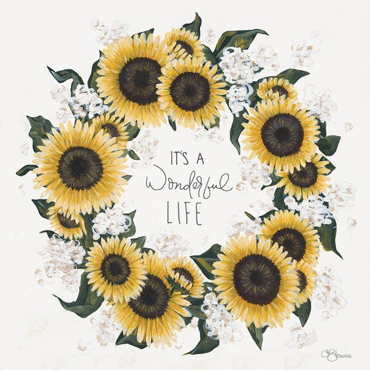 Its A Wonderful Life Wreath White Modern Wood Framed Art Print with Double Matting by Hollihocks Art