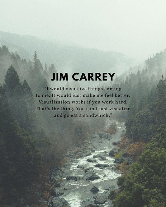 Jim Carrey Quote: Visualize Things Coming to Me White Modern Wood Framed Art Print with Double Matting by ArtsyQuotes