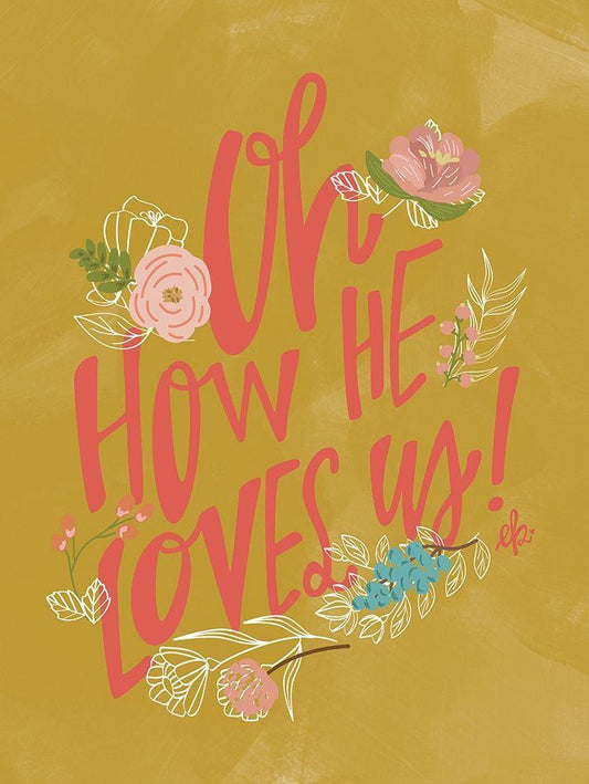 Oh How He Loves Us! White Modern Wood Framed Art Print with Double Matting by Barrett, Erin